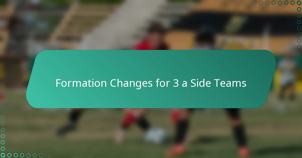 Implementing formation changes for 3-a-side teams requires clear strategies and effective communication. Focus on practicing specific drills, transitioning smoothly during games, and making mid-game adjustments based on performance.
