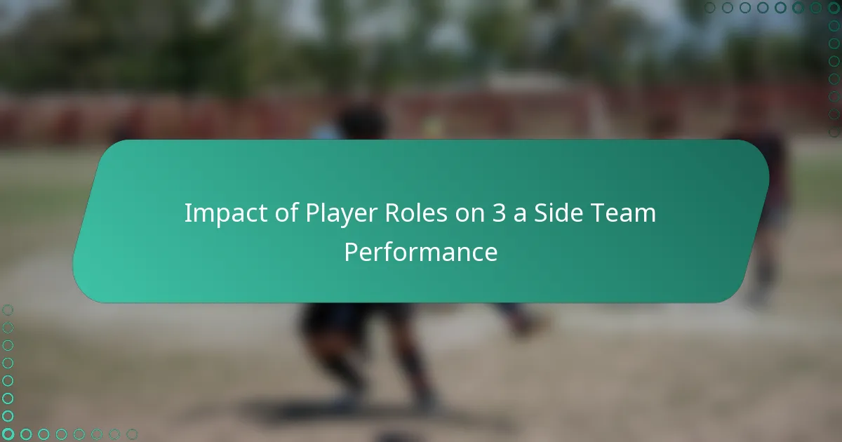 Player roles significantly influence team performance in 3-a-side games by defining responsibilities that enhance overall effectiveness. Each role – defensive, midfield, and forward – contributes uniquely to stability, control, and scoring, ultimately shaping the team’s success on the field.