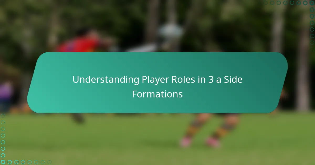 In a 3-a-side soccer formation, each player has distinct roles that contribute to the team’s overall strategy. The primary roles include a striker, a midfielder, and a defender, each with specific responsibilities that enhance both offensive and defensive play.